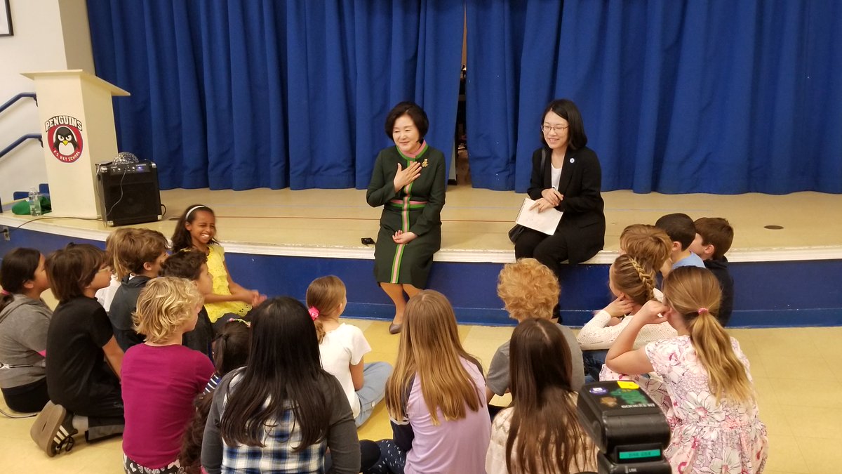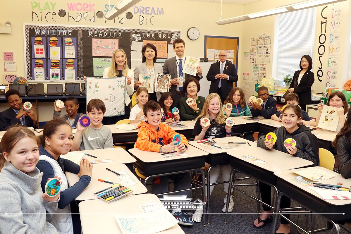 - Last week we were honored to have Korea's First Lady Kim Jung-sook join our minhwa art & K-Pop dance workshops at Key Elementary School for @EmbassyAdoption Program! Big thanks to @joindcps, @WashPerformArts and instructors MJ Choi of @ilovedancenyc & Ms. Keum Sook Yang!